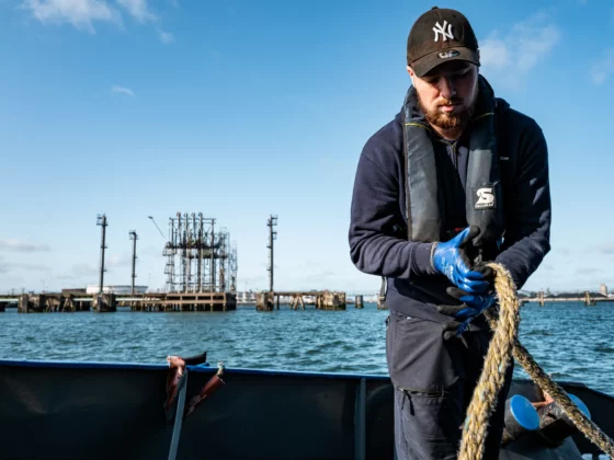 Fotograaf Roderik van Nispen voer een tijdje geleden een dag mee met een afvalboot waar Joey Stegers (35) werkt als matroos. Hij werkt sinds twee jaar bij Nature Group waar hij de taak heeft het afval uit de boten in de haven op te halen, te scheiden en naar de verwerker te brengen. “Op de foto’s sta ik in het ruim en heb ik de haak van de kraan in mijn handen”, vertelt Joey. “Ik ben een container aan het aanhoeken.” Hij is meestal een week onderweg, waarna hij weer een week thuis is. Het leukste van zijn werk is volgens hem dat hij dagenlang achter elkaar op de boot verblijft en dat iedere dag er weer anders uit ziet. “Je weet nooit hoe laat je klaar bent en wat je allemaal tegenkomt. Al kan dat ook wel smerig zijn. “Ik heb er altijd een hekel aan als ze alles door elkaar gooien. Dan zitten er accu’s in, stukken ijzer en is er verf doorheen gelekt. Dat is inderdaad heel anders als de afvalbak van thuis”, zegt hij lachend.