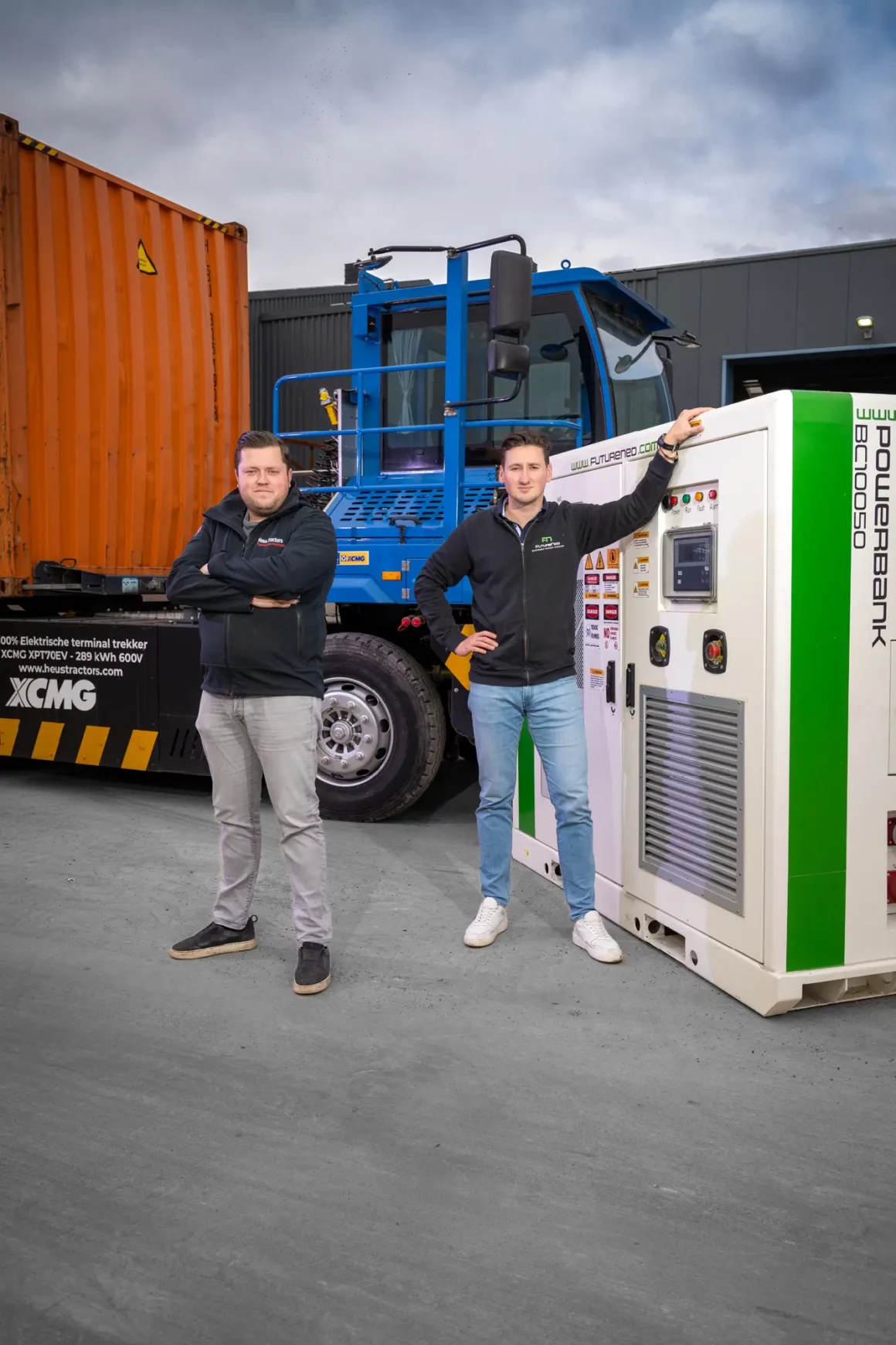 We zijn inmiddels drie jaar verder en hun bedrijf FutureNed draait als een tierelier. Het is een bv onder P. de Heus & Zonen Greup (geen tikfout…) en ze delen het kantoor en vaak het personeel, waaronder ‘topverkoper’ Dennis Houweling. Dofferhoff: “We versterken elkaar. Klanten die bij De Heus een machine willen kopen, op diesel óf elektrisch, adviseren we meteen over de laadopties via FutureNed. Dan wordt het dus meestal de elektrische en verkoopt Dennis er een laadsysteem bij.’’